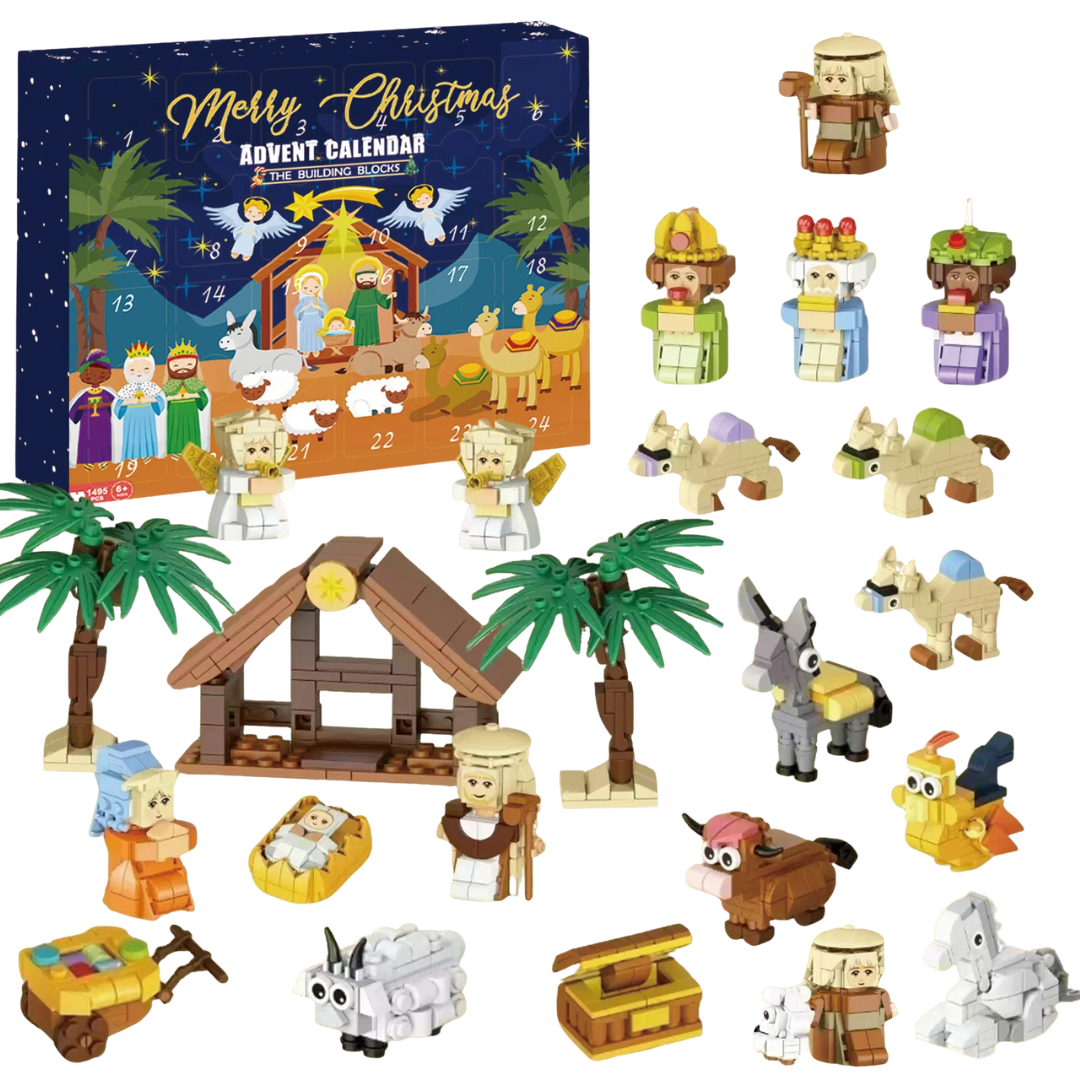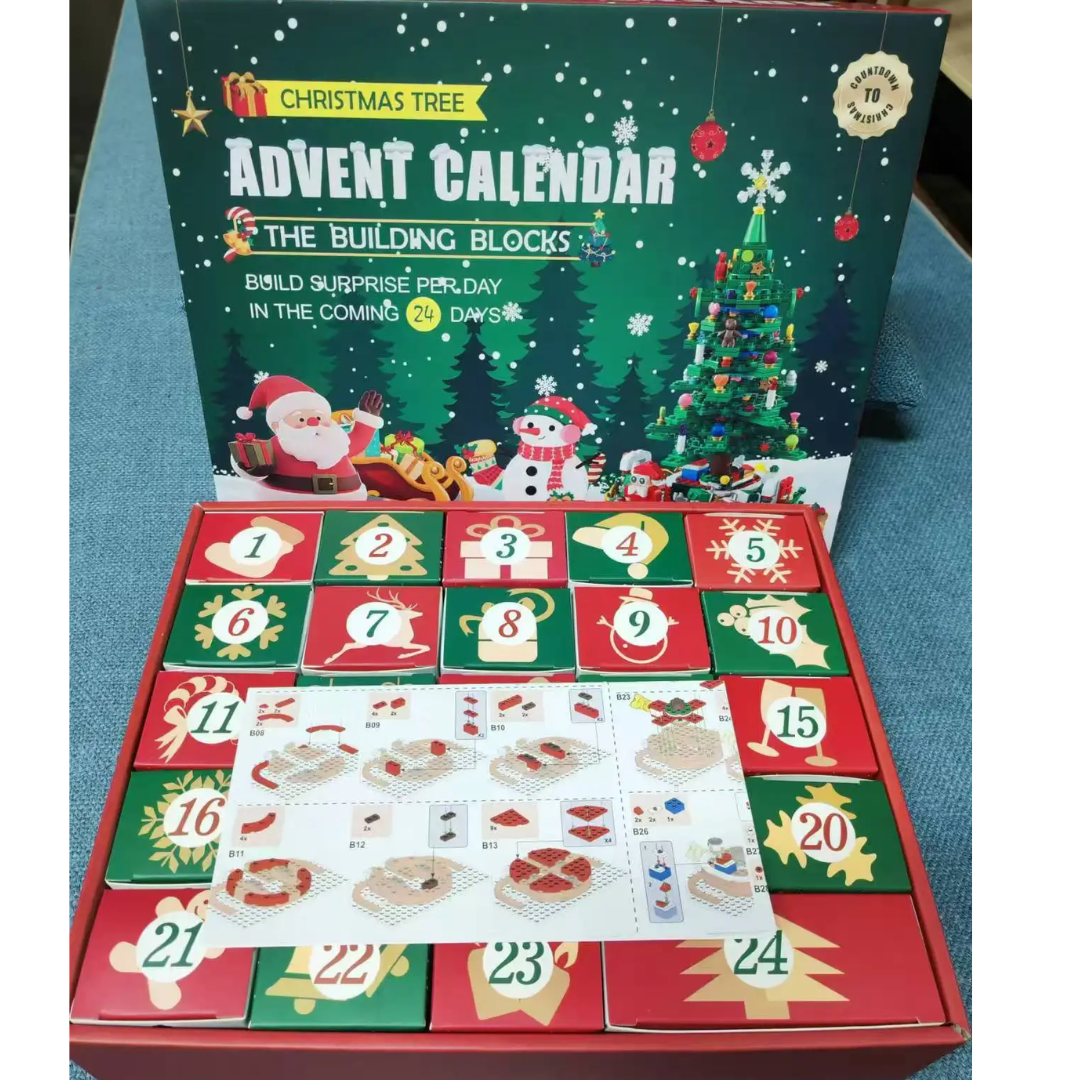 Cada calendario incluye 24 mini sets de bloques sorpresa, uno para cada día de diciembre, piezas que se combinan para formar una figura final más grande, e instrucciones fáciles de seguir.